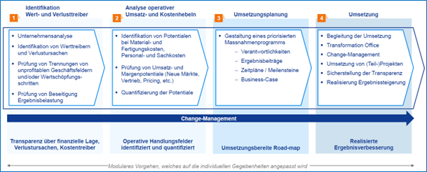 Das umfassende, in sich abgestimmte Turnaround-Programm ermöglicht Investitionen in aussichtsreiche Wachstumsfelder durch die konsequente Einsparung von Herstellkosten und ist damit ein gutes Beispiel für eine abgestimmte, breit abgestützte Transformation, in der einzelne Hebel ineinandergreifen.