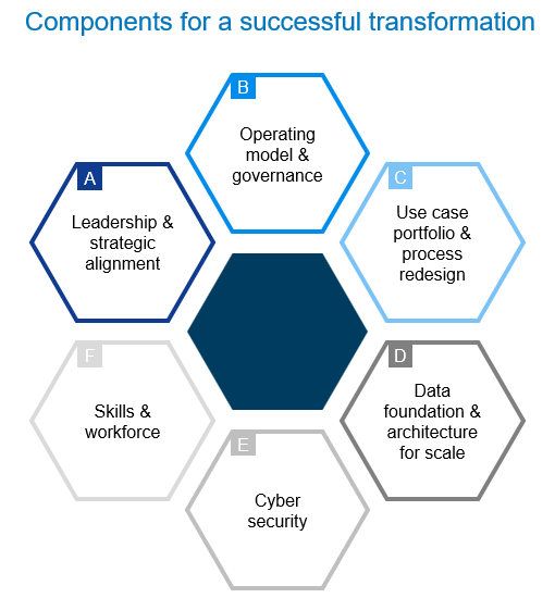 Once initiated, a transformation to an AI-enabled organization can only be scaled if trust in how AI is used across the organization is actively enabled. Strong governance to safeguard this trust – through clear accountability on management and other levels, robust risk management, transparency, and compliance – is key.